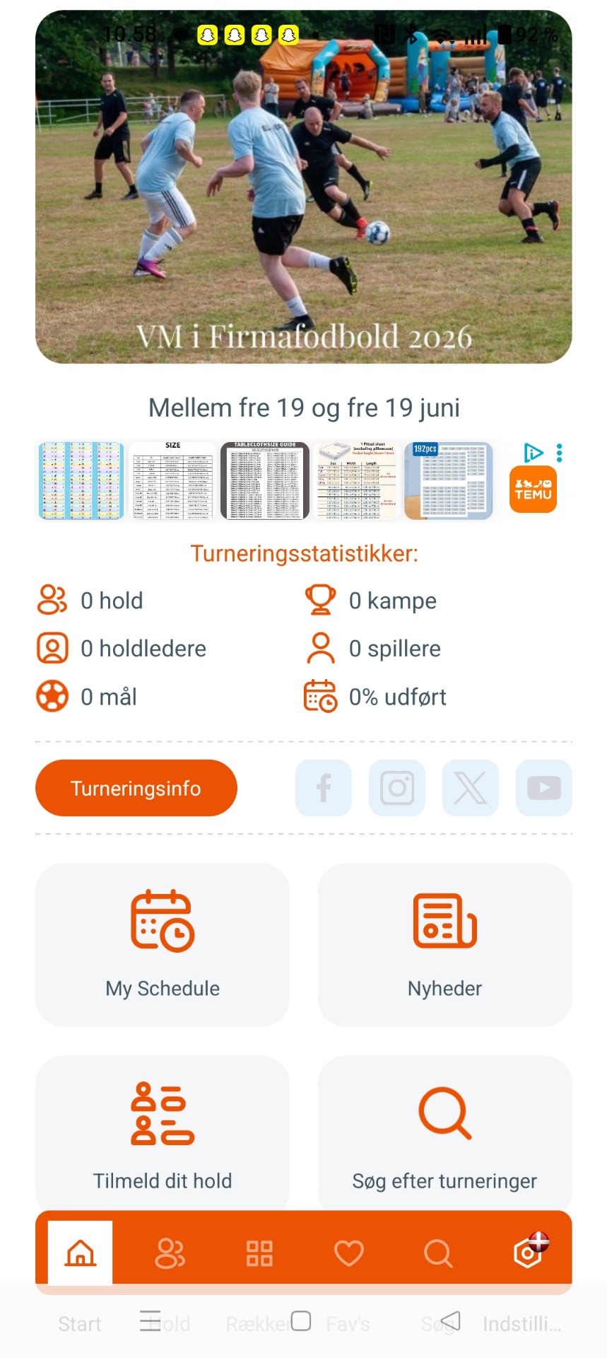 På dette sted og i Appen vil spilleplanen for VM i Firmafodbold 2026 være tilgængelig ca. 1. juni 2026. Det er også i appen du kan følge resultaterne